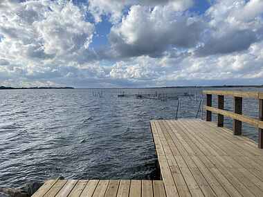 Der er kun et par hundrede meter til vandet og havnen. “Høkeren” på havnen er en af Møns bedste caféer med lækkert udvalg af mønske specialiteter. Se åbningstider på høkerens insta: haarboellehavnehoeker