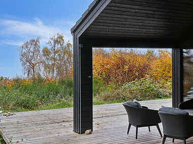 Omkring huset er der skov og træer, som skaber en privat og tilbagetrukket atmosfære. Her kan I nyde ferien i fred og ro uden forstyrrende naboer.