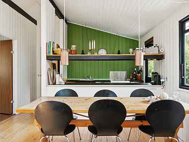 Haven omfavner jer med et væld af grønne planter. Gå på opdagelse i de vilde blomsterbede, saml bær og frugter fra de frodige buske og træer. Slap af på den overdækkede terrasse og nyd roen i den private have, mens børnene skaber snobrødsminder ved bålstedet. I sommerhuset finder I også cykler, der indbyder til lange, forfriskende ture i Odsherreds bakkelandskab. Stranden, en af Danmarks bedste børnevenlige sandstrande, ligger blot 15 minutters gang væk.