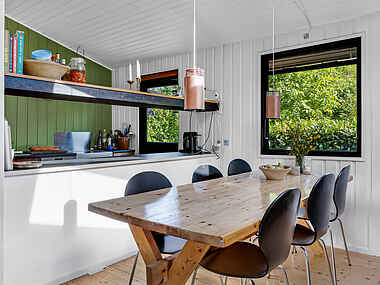 Haven omfavner jer med et væld af grønne planter. Gå på opdagelse i de vilde blomsterbede, saml bær og frugter fra de frodige buske og træer. Slap af på den overdækkede terrasse og nyd roen i den private have, mens børnene skaber snobrødsminder ved bålstedet. I sommerhuset finder I også cykler, der indbyder til lange, forfriskende ture i Odsherreds bakkelandskab. Stranden, en af Danmarks bedste børnevenlige sandstrande, ligger blot 15 minutters gang væk.