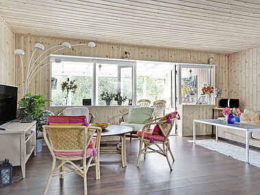 Ferieboligen rummer 107 m² charme. Bygget i 1968, men moderniseret for komfort. Her er tre indbydende soveværelser med plads til i alt fem gæster. Sommerhuset er beliggende på en 1200 m² stor havegrund.