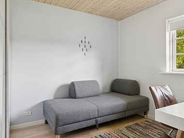 Slap også af på den rummelige terrasse, mens jeres børn spiller fodbold på græsplænen eller bare tumler rundt som de har lyst. Den nærmeste sandstrand ligger kun en kort gåtur væk og tilbyder ideelle betingelser for afslappende timer ved havet. Benyt lejligheden til en forfriskende dukkert og udforsk de idylliske omgivelser ved vandreture eller cykelture, for at nyde den friske havluft fuldt ud.
