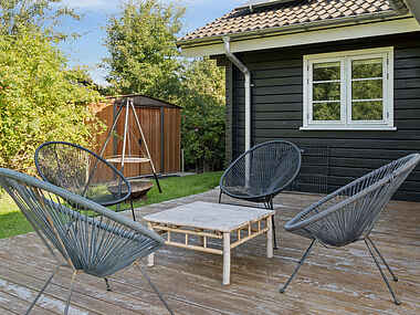 Slap også af på den rummelige terrasse, mens jeres børn spiller fodbold på græsplænen eller bare tumler rundt som de har lyst. Den nærmeste sandstrand ligger kun en kort gåtur væk og tilbyder ideelle betingelser for afslappende timer ved havet. Benyt lejligheden til en forfriskende dukkert og udforsk de idylliske omgivelser ved vandreture eller cykelture, for at nyde den friske havluft fuldt ud.