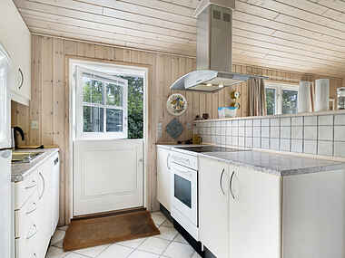 Huset er godt udnyttet med tre værelser, sammenhængende stue og køkken samt et badeværelse. Der er opvaskemaskine i køkkenet, vaskemaskine og brændeovn. Huset er velisoleret, og det kan derfor benyttes hele året rundt.