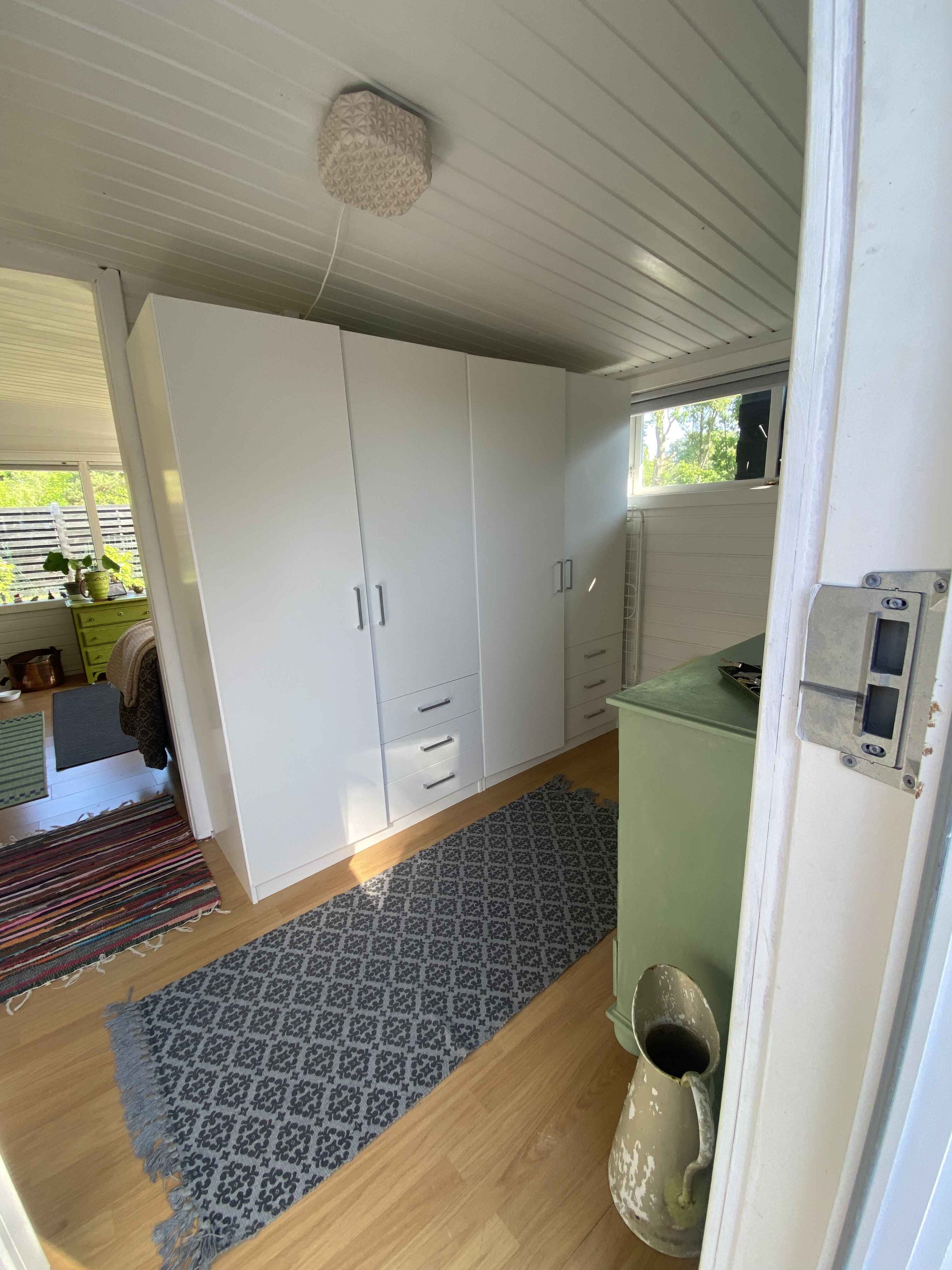Sommerhuset er lyst med sjæl og charme og består af god dejlig spisestue, charmerende badeværelse med brus, køkken med alt der er brug for og stue med forskudt plan med sovesofa (2 pers.) og stort vinduesparti med dør, der fører direkte ud i haven. Hertil er der et soveværelse med dobbeltseng og udgang til den lukkede blomstrene gårdhave.