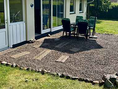 Stuen åbner op mod terrasse og stor ugenert have, hvilket giver nem adgang til udendørs afslapning. Huset rummer desuden et lille, fint badeværelse og et moderniseret stålkøkken, hvor madlavningen nemt kan være en del af ferien.