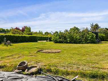 Stuen åbner op mod terrasse og stor ugenert have, hvilket giver nem adgang til udendørs afslapning. Huset rummer desuden et lille, fint badeværelse og et moderniseret stålkøkken, hvor madlavningen nemt kan være en del af ferien.