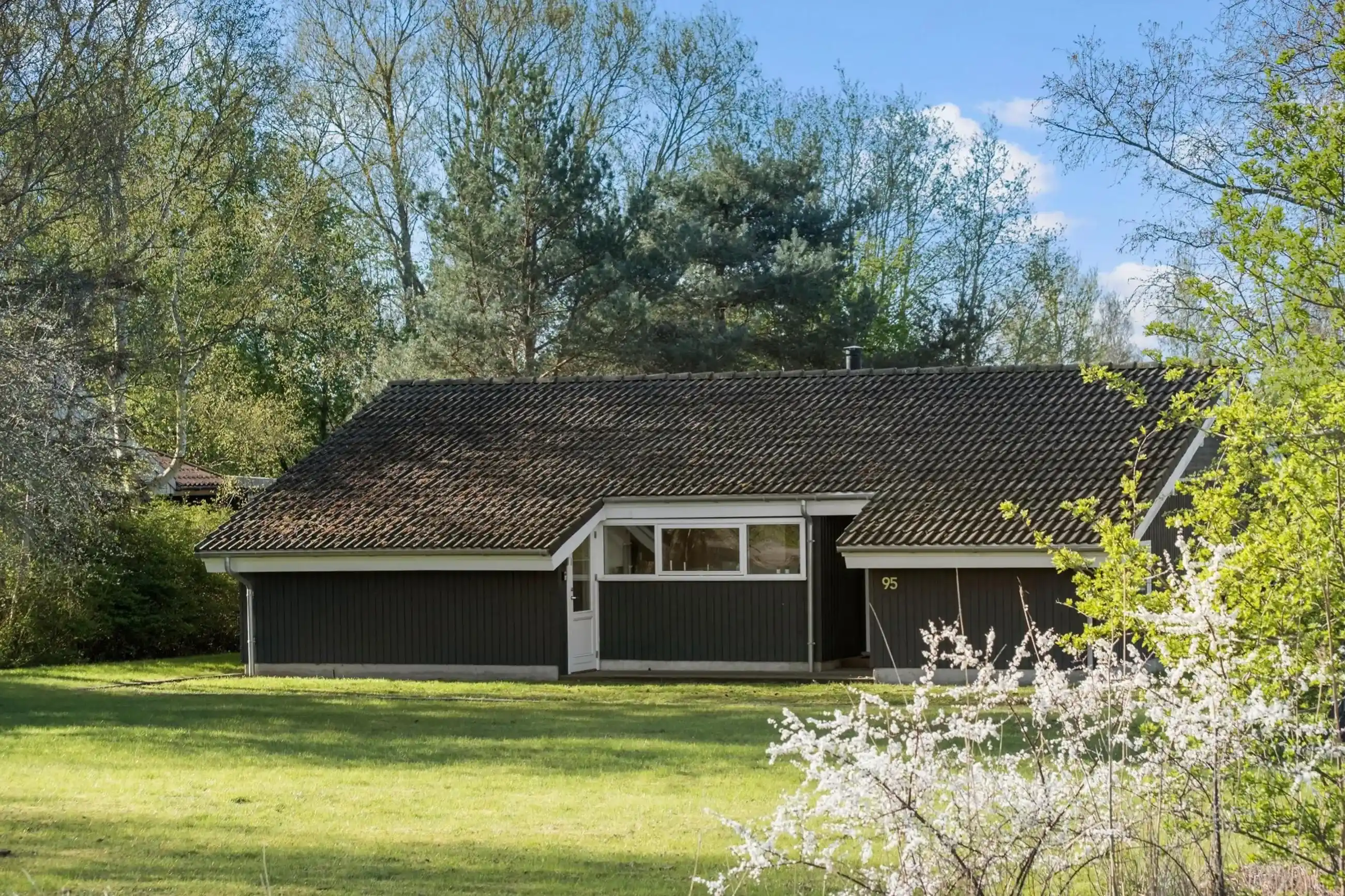 Huset rummer tre separate soveværelser, et stort opholdsrum med åben forbindelse til køkkenet og et lyst badeværelse. Det er velegnet til både familier og små grupper, der ønsker fredelige rammer tæt på naturen.