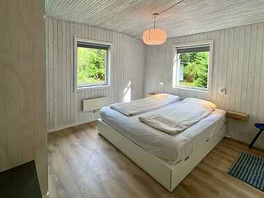 Sommerhuset består af en hovedbygning med et soveværelse og bad, med to store terrasser (en overdækket). Derudover er der to hytter med et soveværelse hver. Der er i alt tre dobbeltsenge (nye 2025)(king, queen, queen) og en køjeseng. Så man kan komfortabelt være 8, incl. 2 er børn der vil sove i køjeseng.
