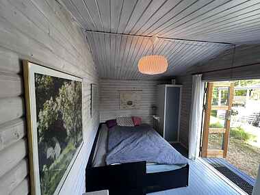 Sommerhuset består af en hovedbygning med et soveværelse og bad, med to store terrasser (en overdækket). Derudover er der to hytter med et soveværelse hver. Der er i alt tre dobbeltsenge (nye 2025)(king, queen, queen) og en køjeseng. Så man kan komfortabelt være 8, incl. 2 er børn der vil sove i køjeseng.