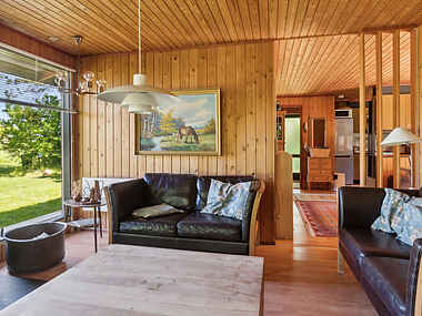 Dette sommerhus ved Kalundborgs kyst er et idyllisk tilflugtssted, med en behagelig og hyggelig atmosfære. Det veludstyrede køkken og spisestue indbyder til hyggelige måltider, og stuen åbner op til en indbydende overdækket terrasse, perfekt til afslapning eller TV-underholdning.