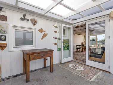 Den private terrasse er delvist overdækket, og det er muligt at lukke den overdækkede terrasse helt af, hvis vejret er til den kolde side.