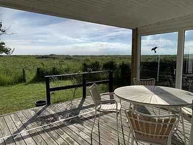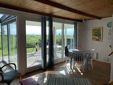 Ejendommen ligger i 1 række med egen sti til stranden (sydvest) og rimelig læ for vind på grund af diget. Mod sydøst har man flot udsigt til den naturlige eng og lille skov.