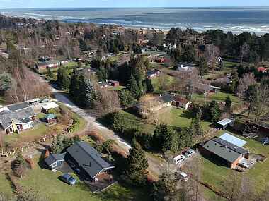 Fra huset er der kun 300 meter til stranden – perfekt til både morgenbadning og aftengåture. Langs kysten finder du det stemningsfulde Pumle Nakke Traktørsted.