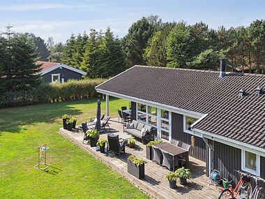Huset ligger 1000 meter fra vandet, og i haven kan du nyde solen på solvognene, grille på gasgrillen eller hygge dig i loungeområdet. Varmepumpe og brændeovn sikrer et behageligt indeklima året rundt.