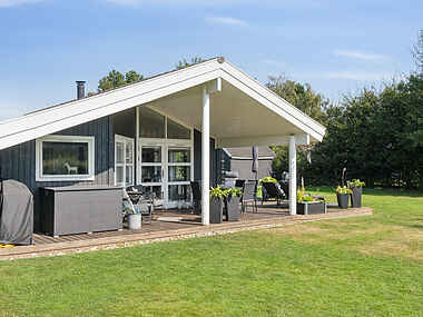 Huset ligger 1000 meter fra vandet, og i haven kan du nyde solen på solvognene, grille på gasgrillen eller hygge dig i loungeområdet. Varmepumpe og brændeovn sikrer et behageligt indeklima året rundt.