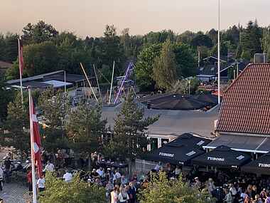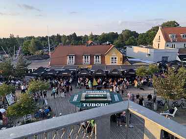 Marielyst, der gennem mere end 100 år har været den foretrukne badeby på den danske østkyst har en sydlandsk stemning med udeservering på caféer og restauranter.