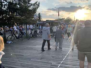 Marielyst, der gennem mere end 100 år har været den foretrukne badeby på den danske østkyst har en sydlandsk stemning med udeservering på caféer og restauranter.
