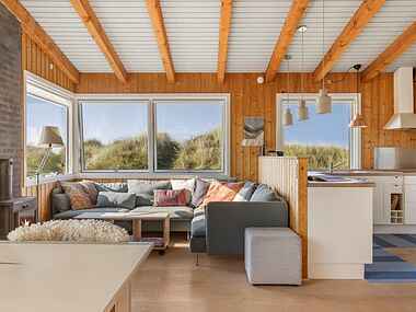 Sommerhuset er simpelt, funktionelt og har alt, hvad I som familie skal bruge for at komme helt ned i tempo. Hele husets omdrejningspunkt er det store, åbne køkken, som er i forlængelse af stuen. Der er højt til loftet, der kommer masser af lys ind, og så har det masser af 70’er charme, som netop er det årti, huset er fra. Fyrretræsplanker på væggene, store vinduer med direkte udsigt til havet, personlig indretning og plads til bare at være sammen som familie. I vil kunne mærke det med det samme. Den der helt særlige følelse af ægte sommerhusstemning.