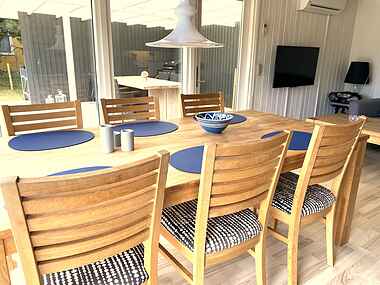 Den store overdækkede terrasse indbyder til hyggelige grill aftener. Haven er indhegnet.