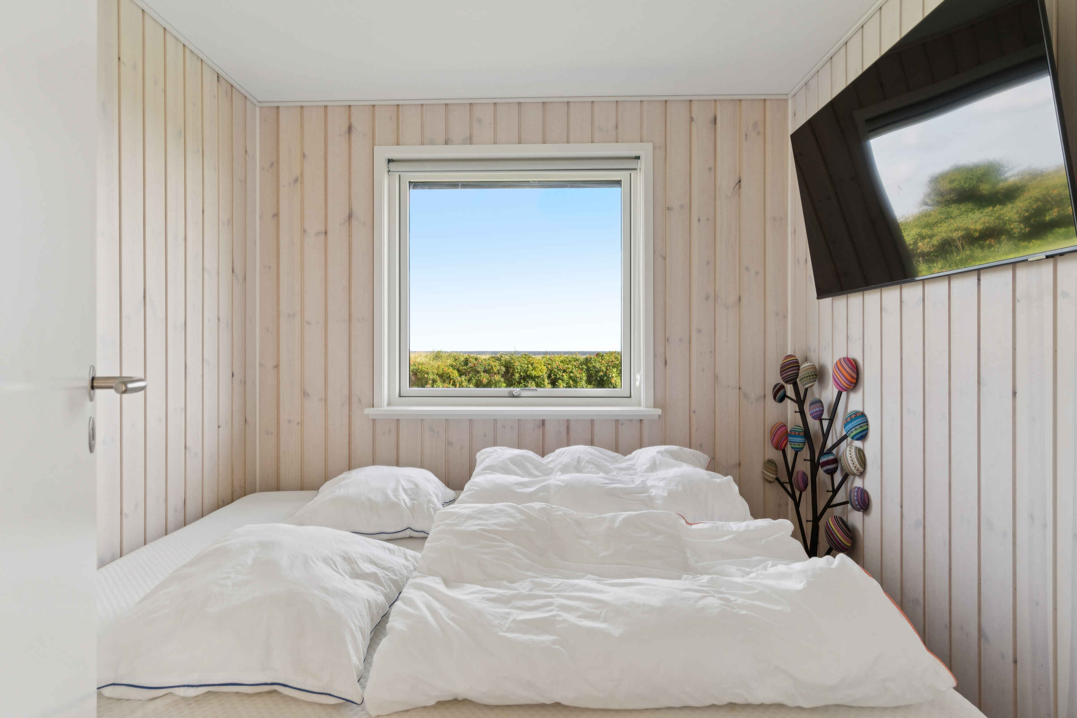 Nyrenoveret feriehus på 87 m² med 3 soveværelser og plads til 6 personer. Den 17 m² store udestue forlænger sæsonen, og fra huset er der udsigt til havet. Kun 50 meter fra døren ligger Kattegat – perfekt til morgenbad eller en tur på paddleboard (3 stk til rådighed). Huset er allergivenligt og husdyr er strengt forbudt.