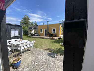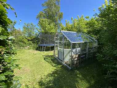 Der er en dejlig træterrasse med sol det meste af dagen samt et overdækket område, hvor udelivet kan nydes på trods af lidt regn eller lavere temperaturer. Grunden er 1200 M2 med masser af hyggekroge og plads til udfoldelse. Der er vildmarksbad, gynger, trampolin, lysthus, bålplads og forskellige ude-spil. I kan ofte se rådyr og harer løbe over grunden i de tidlige morgen eller aften timer.