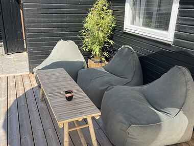 I haven venter en unik overraskelse: en sauna. Medbring brænde og Forestil dig at varme op i denne unikke sauna, mens du lytter til naturens lyde omkring dig. Efter en god saunatur kan du træde direkte ud i haven og hen til den rummelige træterrasse, hvor morgenkaffen eller aftensmaden kan nydes.