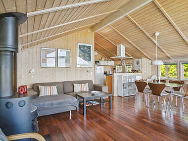 Indenfor i huset bydes I velkommen af en lys og åben atmosfære, hvor moderne møbler skaber en stilfuld og behagelig oase. Fra stuen til køkkenet og de tre hyggelige soveværelser er alt indrettet med tanke på jeres komfort og velvære. En brændeovn tilføjer en ekstra dimension af hygge, perfekt til kølige aftener eller tidlige morgener, når morgendisen stadig hænger over havet.