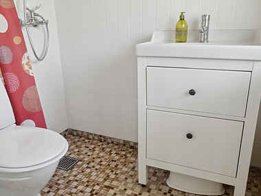 Nyd lange, solrige dage på den lille, idylliske badestrand, hvor det klare vand indbyder til forfriskende svømmeture og afslappende solbadning.