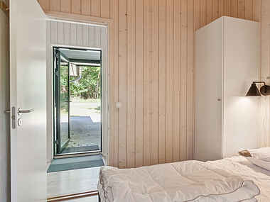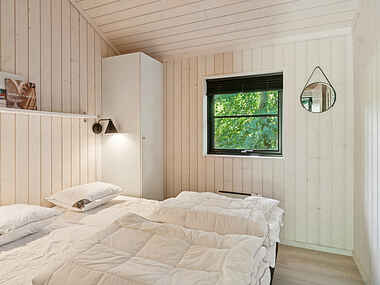 Dette sommerhus har plads til op til otte personer og rummer tre separate soveværelser. Boligen er 95 m² og indrettet med et åbent opholdsrum, hvor køkken, spiseplads og stue flyder sammen. Brændeovnen og varmepumpen sikrer varme og hygge – året rundt.
