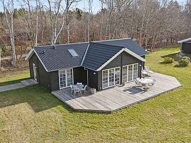 Indretningen er en skøn kombination af et veludstyret, åbent køkken, der smelter sammen med den lyse og hyggelige spise- og opholdsstue samt en hyggelig alkove, hvor du kan sidde og nyde en god bog eller tage en lille lur. Den perfekte ramme for samvær og kulinariske oplevelser. Direkte fra køkken-alrummet samt fra et af soveværelserne kan man træde ud på den store sydvendte træterasse. Her kan man sidde eller ligge og nyde solen, mens børnene spiller bold og leger i den store have. I haven er der også et bålsted, hvor I kan riste skumfiduser, pølser, snobrød og tilmeld lave pandekager.