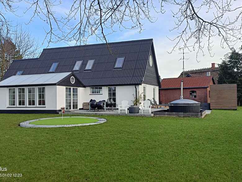 Huset er udstyret med en varmepumpe, der sikrer en behagelig temperatur året rundt. Der er også gæstetoilet, hvilket er praktisk til større grupper eller familier.