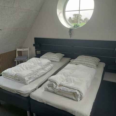 Dette rummelige feriehus på 175 m2 tilbyder komfort og hygge med fire soveværelser og plads til otte personer. To soveværelser ligger i stueplan, mens de øvrige to er placeret på 1. sal.