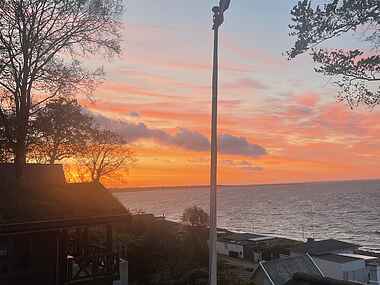 Fra huset får I en flot panoramaudsigt over vandet. Kun 50 meter adskiller jer fra stranden, hvor I kan bade, gå ture og nyde solen. Haven er anlagt i forskellige niveauer og giver flere hyggelige steder at opholde sig.