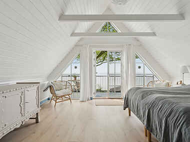 I husets udestue kan I samles om måltiderne og nyde udsigten til strand, hav og skov. På husets 1. sal er der to mindre værelser og et stort soveværelse. Fra soveværelset er der udgang til en altan, hvor morgenkaffen kan indtages til lyden af bølgeskvulp. Uden for kan I slænge jer i solsengene på et lille plateau og indtage frokosten og aftensmaden på terrassen