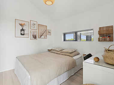 Indenfor finder du en moderne og funktionel bolig med alle de nødvendige faciliteter til at sikre et komfortabelt ophold. Den private terrasse er perfekt til udendørs spisning eller afslapning i solen.