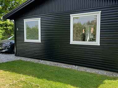 Indenfor byder huset på to komfortable soveværelser og et velindrettet badeværelse, der tilsammen tilbyder fire sovepladser. Den lyse og indbydende stue prydes af en varmende brændeovn og et fjernsyn, mens udsigten ud til haven giver en fornemmelse af sammenhæng med naturen. Et rummeligt spiseområde indbyder til fælles måltider og hyggelige stunder.