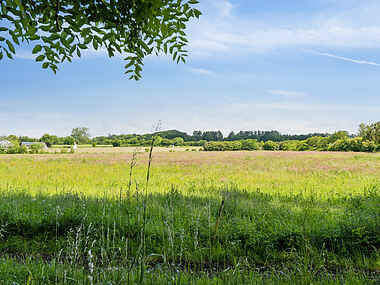 Grunden er stor og haven er indhegnet, så du kan lade eventuelle hunde eller små poder lege frit under æbletræerne. Du kan smutte igennem træer og buske på de små stier, der leder gennem et gammelt stengærde, og pludselig står du med de åbne vidder foran dig; udlejers private vilde marker og enge.