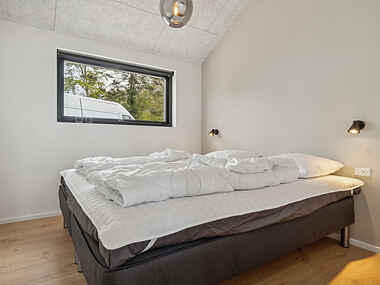 Med sine 134 m2 er der rigelig plads til alle, uanset om I ønsker at samles til hyggelige måltider i det åbne køkken-alrum eller slappe af i den behagelige stue med panoramaudsigt over den omkringliggende natur. De to komfortable elevationssenge sikrer en god nattesøvn, og de store vinduer lader det naturlige lys strømme ind og giver jer en forfriskende følelse af nærhed til naturen.