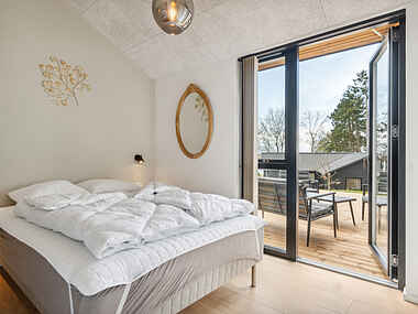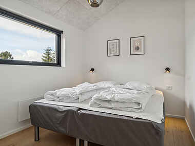 Med sine 134 m2 er der rigelig plads til alle, uanset om I ønsker at samles til hyggelige måltider i det åbne køkken-alrum eller slappe af i den behagelige stue med panoramaudsigt over den omkringliggende natur. De to komfortable elevationssenge sikrer en god nattesøvn, og de store vinduer lader det naturlige lys strømme ind og giver jer en forfriskende følelse af nærhed til naturen.