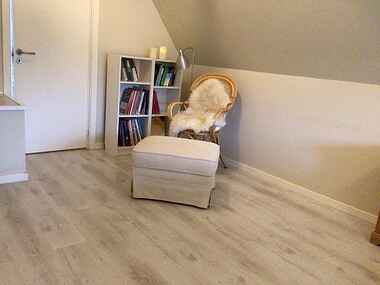 Vores hus er udstyret med alt hvad du skal bruge til en dejlig ferie. På første sal er der et gennemgangsrum med plads til at arbejde. Derudover er der 2 soveværelser. Det ene med dobbeltseng 220×180. Der er mulighed for at stille en rejseseng eller lægge en madras på gulvet til et barn.