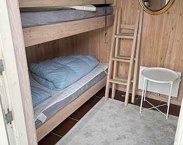 Sommerhuset i Tørresø er beliggende på 600 m² stor grund, kun ca. 300 m fra vandet. Huset indeholder åbent køkken med spiseplads og stor opholdsstue. Sovepladserne fordeler sig på et soveværelse med dobbeltseng og derfra adgang til køjepladser. Derudover er der et værelse med en 3/4 seng samt køjeseng med to sovepladser i annekset. I alt plads til 6 personer.