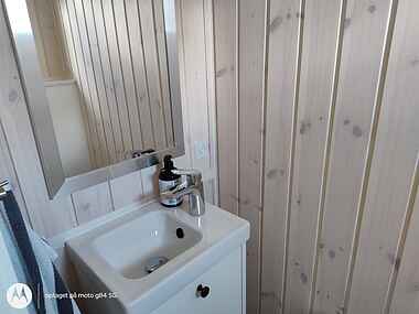 Nyd godt af den nye tilbygning fra 2023. Huset byder på tre komfortable soveværelser og et nyt badeværelse med bruseniche samt udendørs bruser. Sommerhuset har et fuldt udstyret køkken med opvaskemaskine.