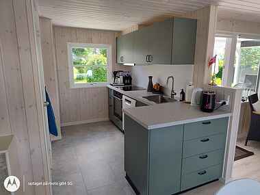 Nyd godt af den nye tilbygning fra 2023. Huset byder på tre komfortable soveværelser og et nyt badeværelse med bruseniche samt udendørs bruser. Sommerhuset har et fuldt udstyret køkken med opvaskemaskine.