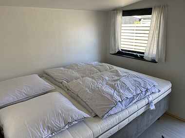Udenfor findes en skøn, overskuelig have med god plads til leg og afslapning. Terrassen indbyder til grill og aftenhygge, mens havets brusen i baggrunden skaber den rette feriestemning.