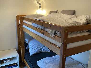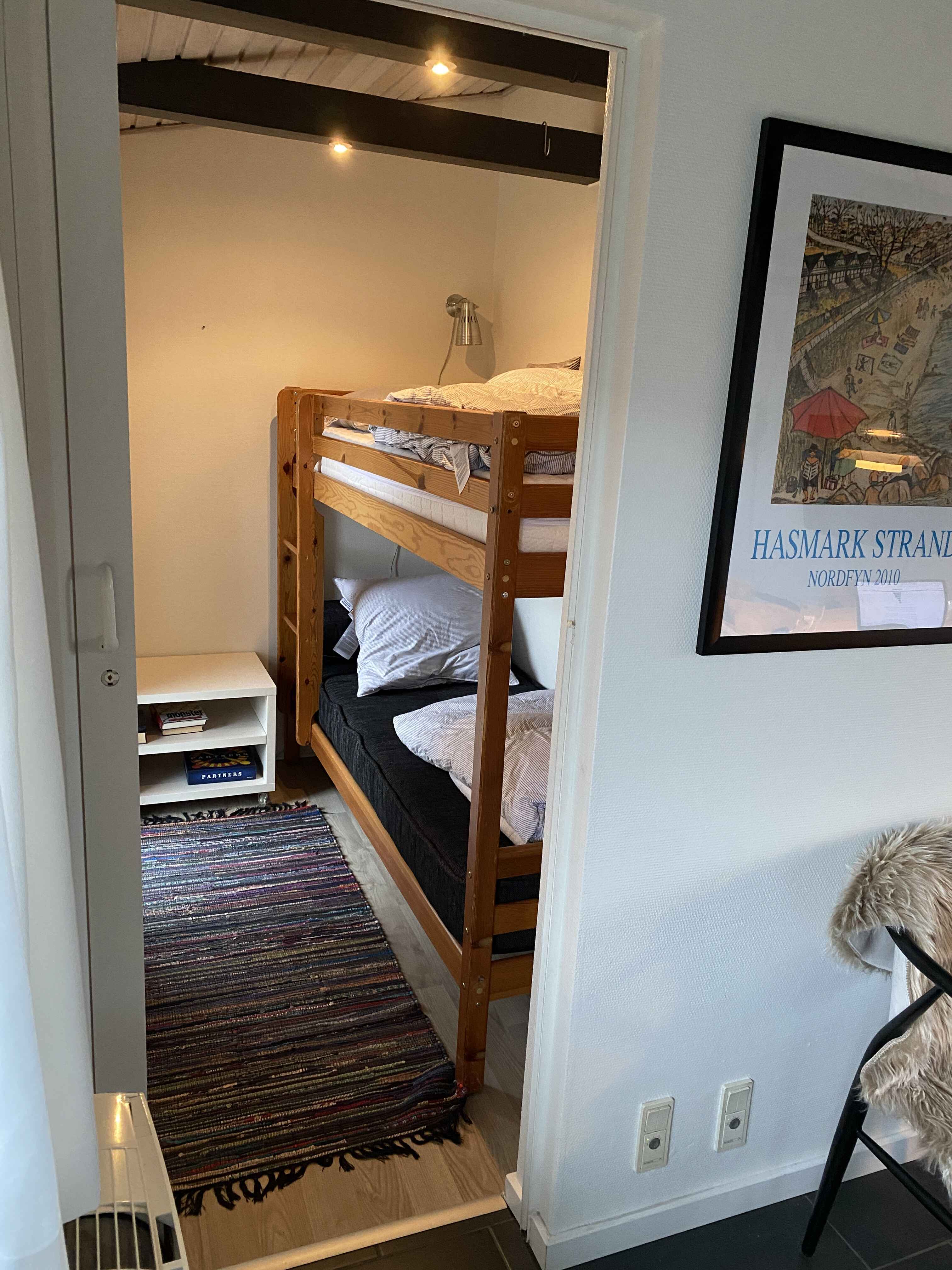 Kun 100 meter fra vandet ligger dette funktionelle sommerhus med plads til fem personer fordelt på tre separate soveværelser. Huset rummer 60 m² og er indrettet, så ferien kan nydes i afslappede rammer – både med familie og venner.