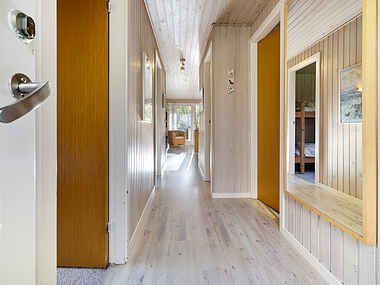 Indenfor venter et hyggeligt hjem med 3 soveværelser og plads til 6 gæster. Moderne bekvemmeligheder såsom en luft-til-luft varmepumpe, radiatorer og en brændeovn sikrer behagelig varme i vintermånederne.