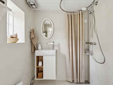 Husets køkken har opvaskemaskine, induktionskomfur, køleskab m. frys, airfryer, varmluftsovn, emhætte. Stuen er møbleret med lækre cigarbrune lædersofaer, sofabord og skønne træ lænestole med lammeskind. Spisebordet i stuen er et smukt gammelt langbord med tilhørende slagbænk og stole til talt 6 personer. Huset er opvarmet med varmepumpe i stueetagen og el radiatorer i køjeværelse, toilet og soveværelset på 1. sal. NB: Adgang til 1. sal er via en lidt stejl trappe. Anbefales derfor ikke, hvis man er svært gangbesværet.