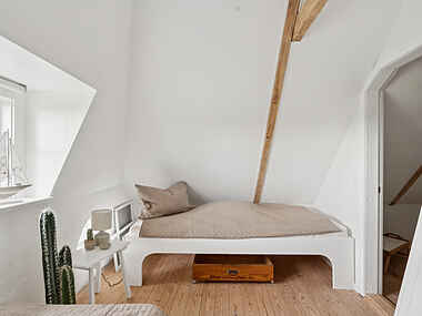 1 salen består af en repos med 2 enkeltsenge. Der er gavlvindue med havudsigt. Fra reposværelset er der adgang til soveværelse med dobbeltseng.