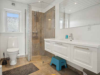 Dette rummelige sommerhus på 141 m² giver plads til op til 12 personer. Her er fire soveværelser, to hemse og to badeværelser, hvilket gør det ideelt til store familier eller flere vennepar.